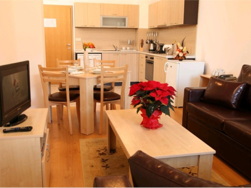 - bucatarie complet utilata (plita electrica, cuptor, frigider, tacamuri, oale, tigai, gatitul este permis)