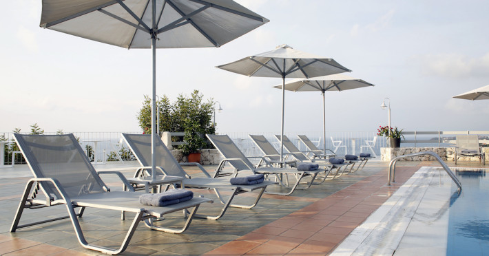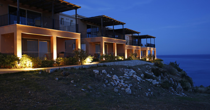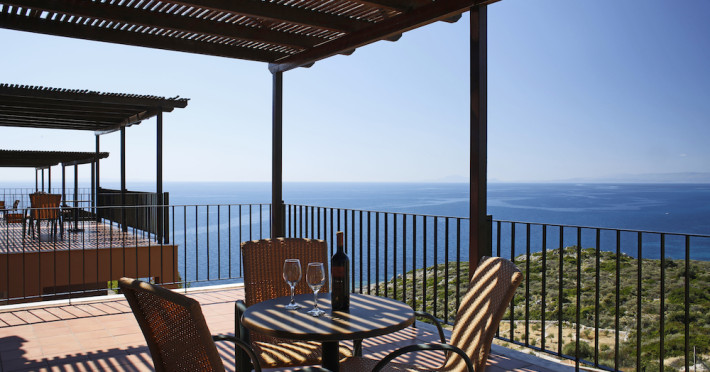 It is a charming establishment with services of the highest quality, set on the top of a hillside overlooking the Ionian Sea, with views of "Zante" Island, "Peloponnese" and the surrounding "Skala" landscapes.