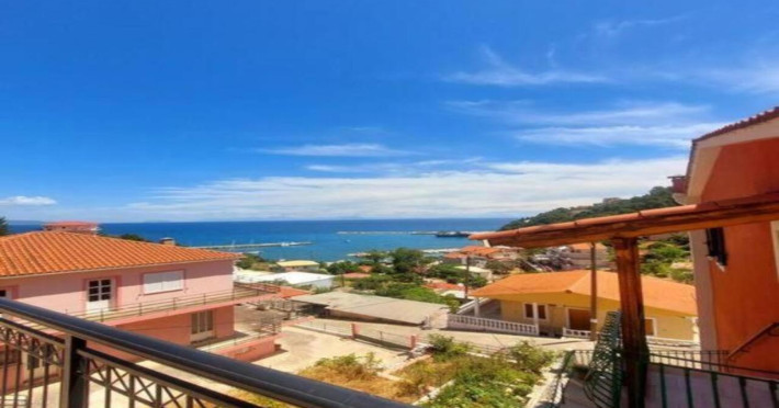 Daisy Maisonette in Poros offers a spacious apartment with two bedrooms and two bathrooms. The living room includes a comfortable sofa and a work desk.