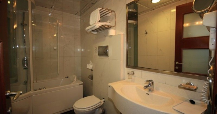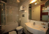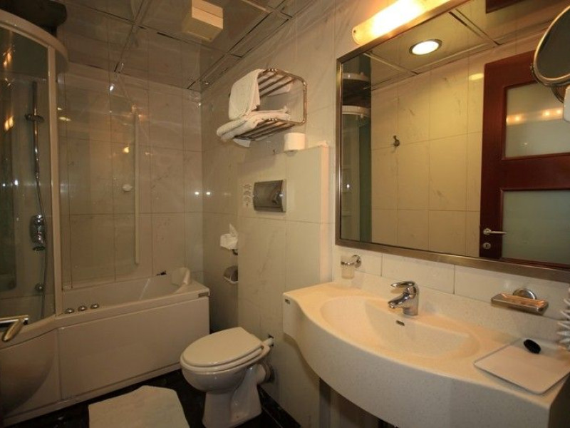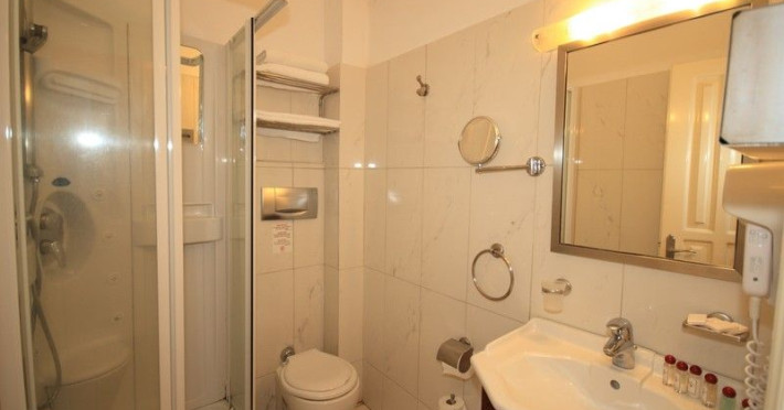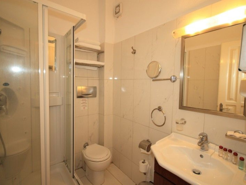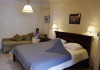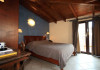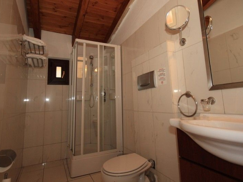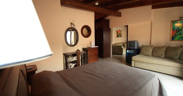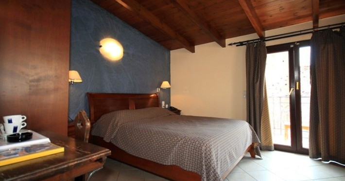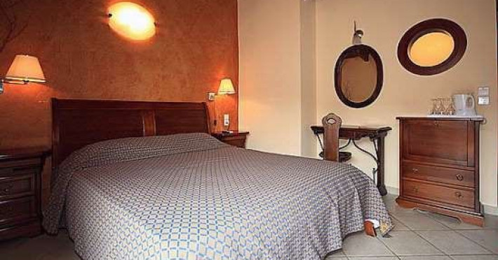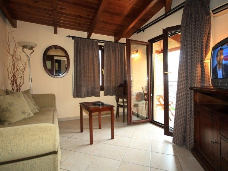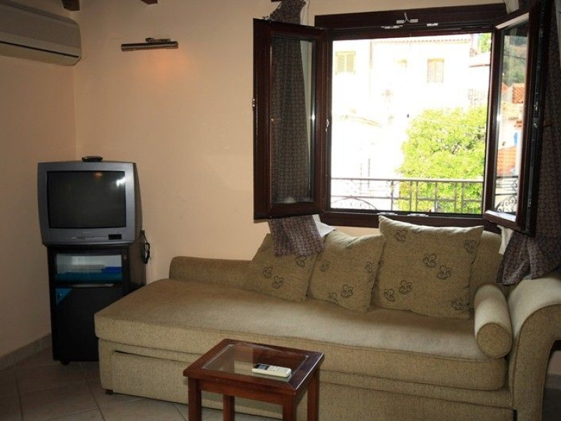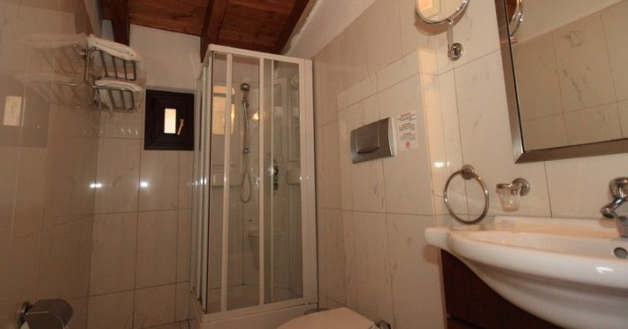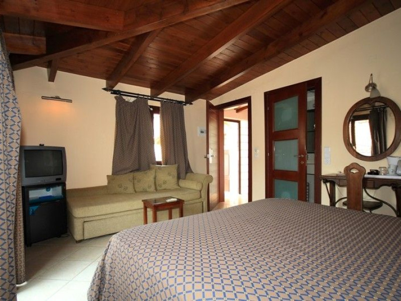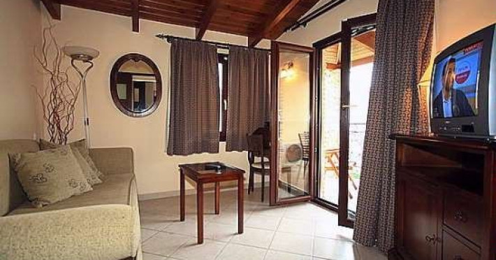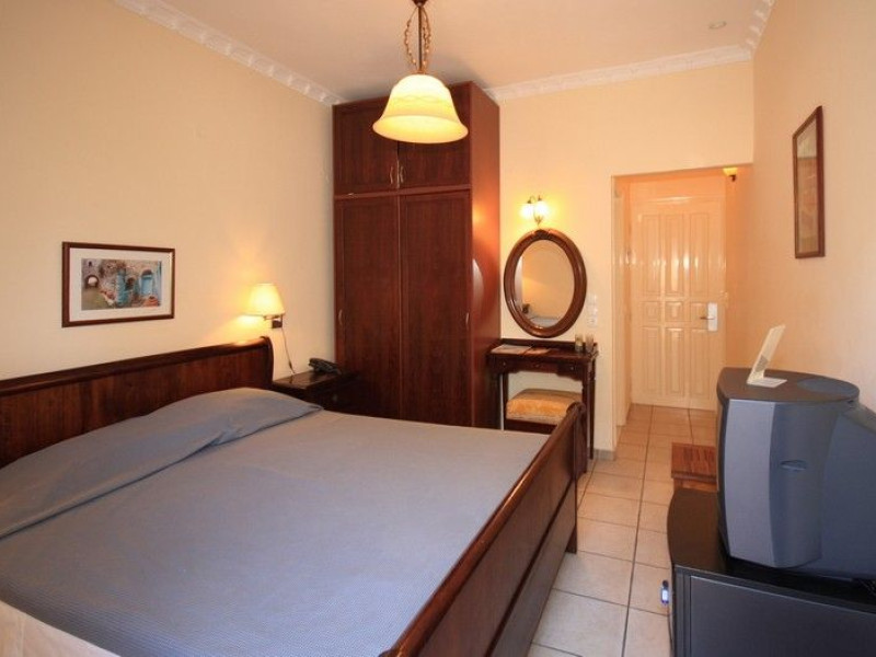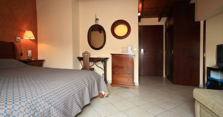 The rooms are decorated in cool shades of cream and white which blend harmoniously with the chocolate brown wood of the handmade furniture imported from Pisa in Italy. Luxury has not been neglected in any way, from the hydro-massaging shower rooms to the air-conditioning. Each room has a balcony, with comfortable wooden furniture, which either looks out to the Castello terrace or the street below and some offer partial views of the 14th century Venetian castle above the town.
