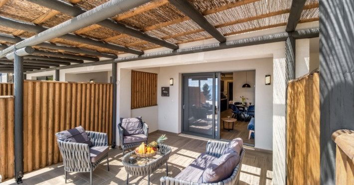 Ionian Hospitality Resort is a brand new complex located in Nikiana Village. The inspiration behind the creation of the property stems from the owners' love for their homeland,, their experience in the hospitality industry, and, most importantly, their passion and desire to offer an unforgettable stay in the beautiful island, Lefkada. It consists of 4 luxury apartments, 2 suites all with shared pool and 3 autonomus luxury villas with private pools , all offering unique moments of relaxation. Ionian Hospitality Resort is also offering an outside gym area, a small playground for the children and a small church.