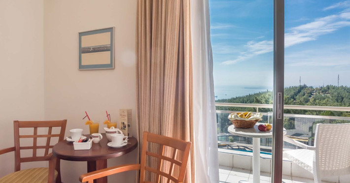All rooms have a private balcony with breathtaking views of Thermaicos Golf, the city of Thessaloniki, the thickly wooded forest of Seich Sou, the open air - pool and the gardens around the hotel.