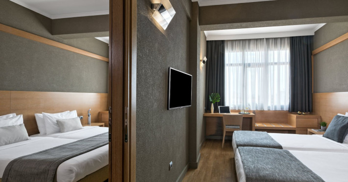 Porto Palace Hotel & Conference Center constitutes a unique hospitality choice in Thessaloniki. Housed in a historical building of 1913 and preserving its industrial architecture, Porto Palace Hotel stands out among other hotels in town.