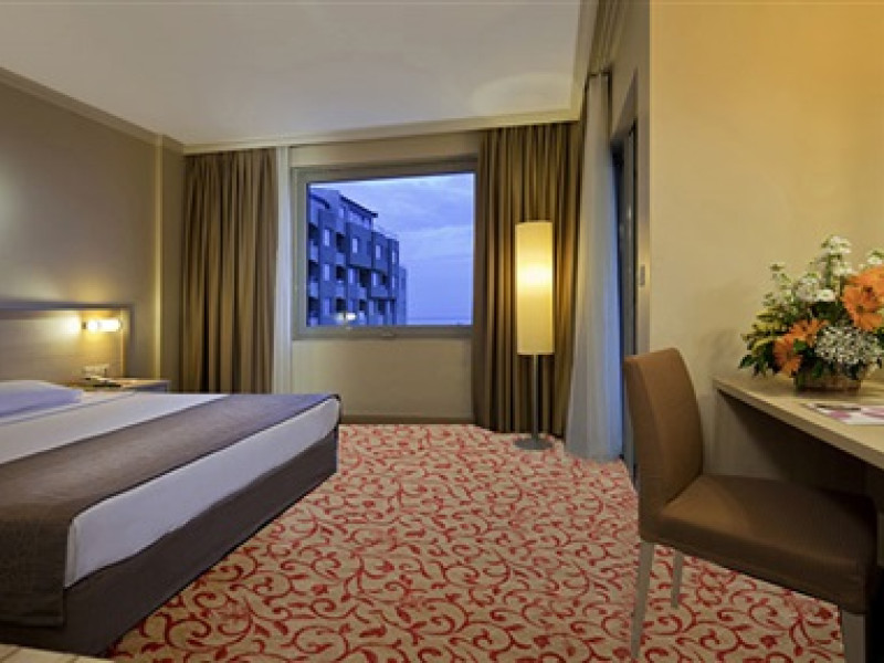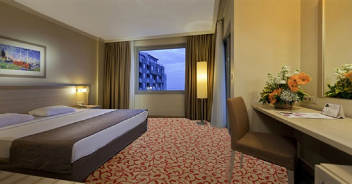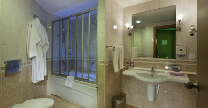 Facilitati camere: Hotelul are o cladire principala cu 7 etaje, vile cu 3 etaje si o cladire anexa cu 3 etaje (CLUB).Toate camerele fiind dotate cu: baie cu cada/dus, telefon, aer conditionat, uscator de par, TV-SAT, minibar, acces internet, seif, balcon.