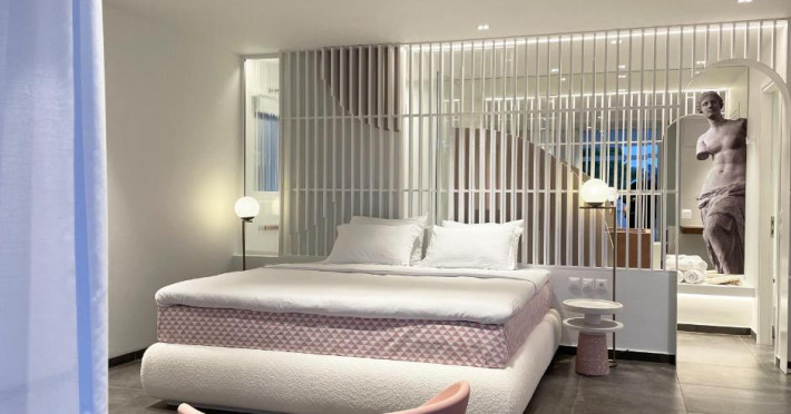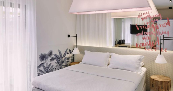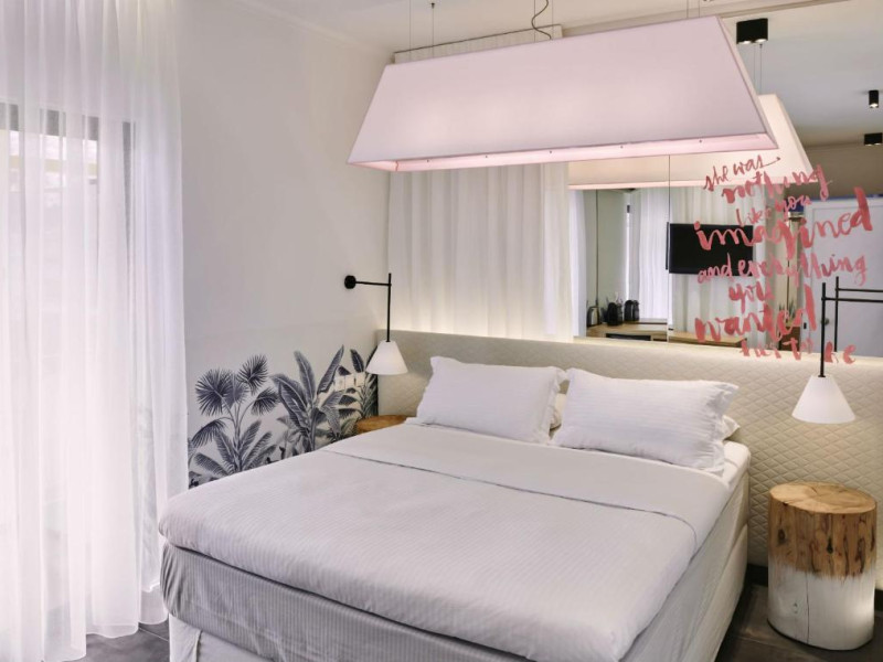 Relax in the garden, refresh at the aqua gym & spa, or enjoy modern Greek cuisine at the a la carte restaurant. Each room features unique design and high-end amenities for an unforgettable stay.