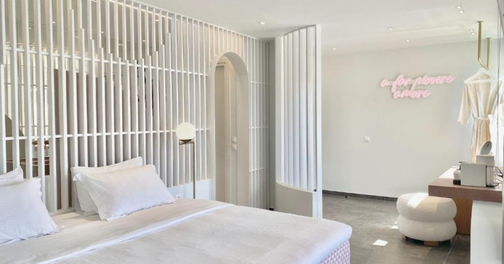 Just 200 meters from Episkopos Beach in Nikiana, on the eastern coast of Lefkada, Thomais Boutique Hotel is a 4**** adults-only boutique property, renovated by Kostis Kotorkis Architects. It offers Lifestyle and Deluxe Coco-mat rooms, as well as the exclusive Prima Vista suite.