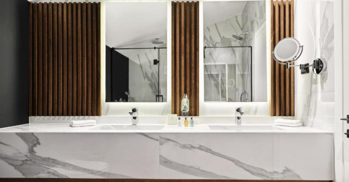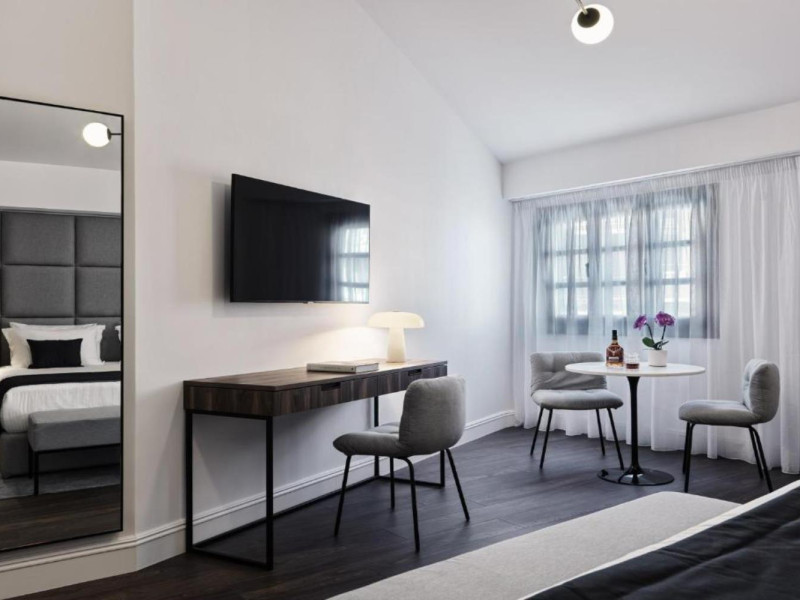 Paying loving attention to every detail, our 45 effortlessly cool rooms and suites are designed with a laid-back tone in mind and earthy color palettes throughout, all with natural wood, sleek minimalistic furniture, and industrial-inspired finishes, introducing a luxuriously cozy alternative to the traditional big city living. Our rooms maximize space and minimize stress, with soundproof windows, big, comfy beds, cleverly placed storage areas, working desks, modern bathrooms, and windows that let the natural light in!