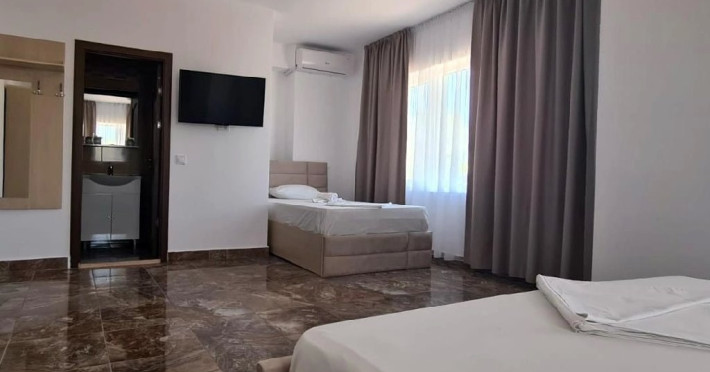 Camerele duble sunt dotate cu pat matrimonial, tv cu cablu, wi fi, aer conditionat, minibar, dulap. Camerele family au in dotare un pat matrimonial si un pat de o persoana se afla la etajele 1, 2 si 3 si nu au balcon. Una dintre camerele family cu vedere la mare este situata la etajul 1 al vilei. Accesul se face pe scarile exterioare ale vilei. Apartamentele au urmatoarea structura: dormitor cu pat matrimonial, living cu canapea extensibila, zona de servit masa, mini frigider, baie cu dus, balcon inchis. Sunt situate la parter si etajul 1.
