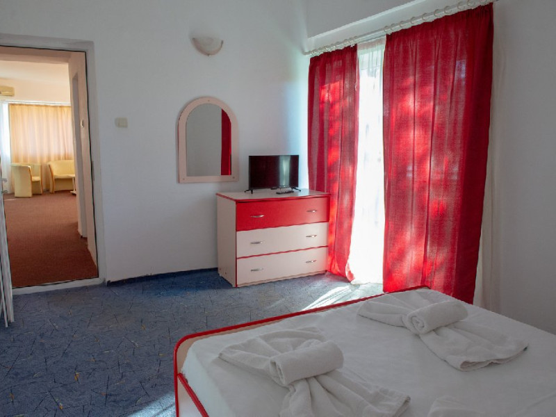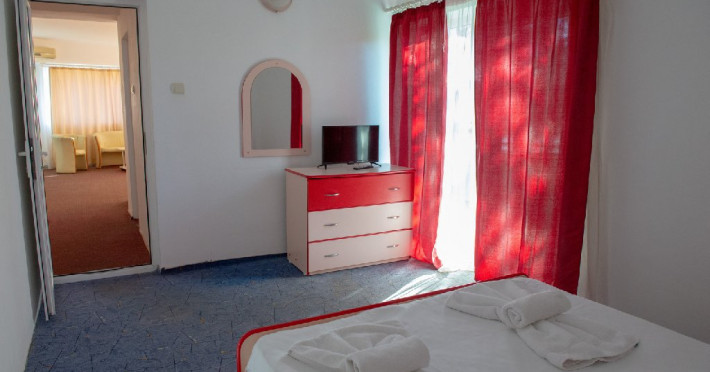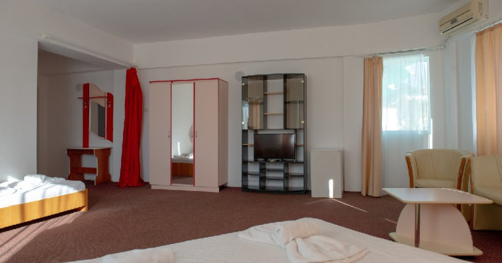 Camerele duble sunt dotate cu pat matrimonial (160x200), aer conditionat, LCD tv, minibar, internet wireless, podele de mocheta si baie cu cada si cosmetice hoteliere. Au balcon mobilat cu masuta si scaune. Suprafata 18 mp. Apartamentele se compun din living cu un pat matrimonial (160x200) si un pat single, un dormitor cu pat matrimonial (160x200), separate cu usa, baie cu cada si balcon mobilat cu masuta si scaune. Sunt dotate cu aer conditionat, podele de mocheta, wi fi, minibar si LCD tv. Suprafata 70 mp. Patul suplimentar este de tip pliant.
