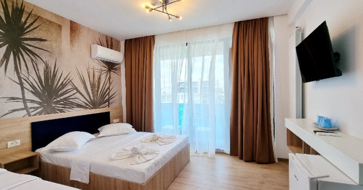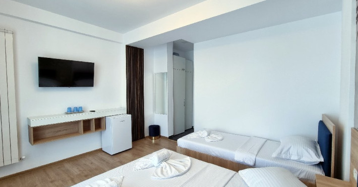 Descriere: inaugurata in vara 2022, Vila Natalia imbina natural eleganta si inovatia cu un design modern si va ofera un numar de 34 camere din care, 18 camere duble, 6 camere duble superioare si 10 camere family. Camerele duble superioare au inclus un fotoliu extensibil. Camerele family dispun de un pat dublu si un pat de 1 persoana.