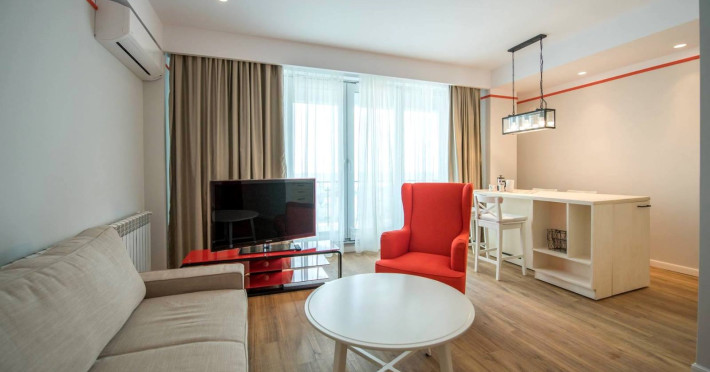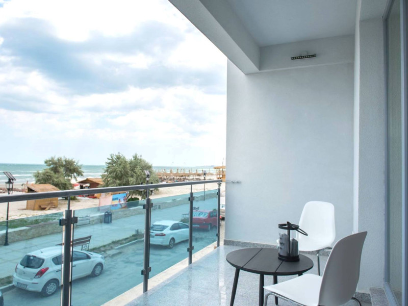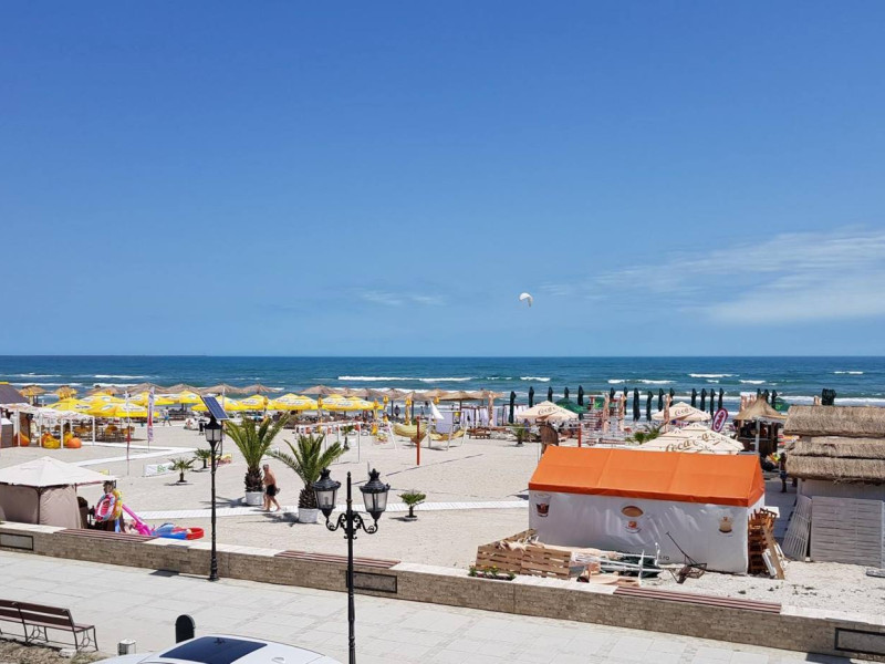 Wave 1 Promenada Apartments ofera spre inchiriere, in regim hotelier, apartamente cu vedere frontala catre mare, situate in prima linie la Promenada. Apartamentele sunt compuse din 2 camere si sunt ideale pentru cazarea a maximum 4 persoane: - living, dotat cu canapea extensibila, TV led de 100 cm, aer conditionat - dormitor, dotat cu pat matrimonial si TV led de 80 cm - bucatarie open space, complet mobilata si utilata (plita pe gaz, frigider, cuptor cu microunde, espressor de cafea) - baie cu cabina de dus - balcon cu vedere frontala la mare/ plaja - centrala proprie pe gaz Etajele superioare sunt deservite de lift. Accesul WiFi este gratuit. Wave 1 Promenada Apartments ofera unitati de cazare in Mamaia Nord, zona Kazeboo. Aceasta proprietate este la 1 minut pe jos fata de plaja (5 m). Statiunea Mamaia este la 4 km. Constanta este la 17 km de Wave 1 Promenada Apartments, iar Neptun este la 60 km. Cel mai apropiat aeroport este Aeroportul International Mihail Kogalniceanu, situat la 28 km de Wave 1 Promenada Apartments. Va asteptam cu soare si mare linistita!