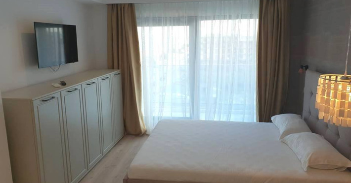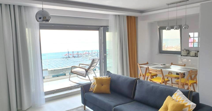 Wave 2 apartament cu 2 camere, cu vedere frontala la mare Adresa concreta a apartamentului: str. Prelungirea D19, nr. 12, etaj 2, ap. 9, Navodari, jud. Constanta Apartamentul are 2 camere (dormitor cu pat matrimonial si living cu canapea extensibila). Capacitate maxima: 4 persoane.