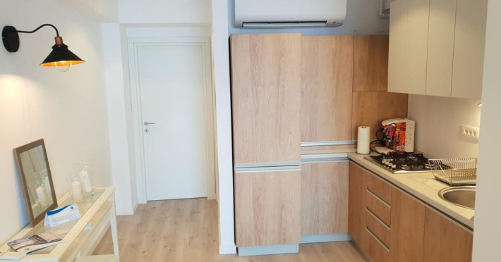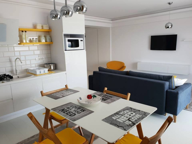 Toate apartamentele au bucatarie de tip open space, complet mobilata si utilata (frigider, plita pe gaz, cuptor cu microunde, cuptor electric, espressor de cafea cu cafea boabe, vesela, tacamuri). Toate apartamentele au aer conditionat, TV LED cu conexiune cablu TV, acces Internet Wi-Fi gratuit, suport uscator de rufe, masa de calcat si fier de calcat, uscator de par, mobilier pe balcoane/ terase.