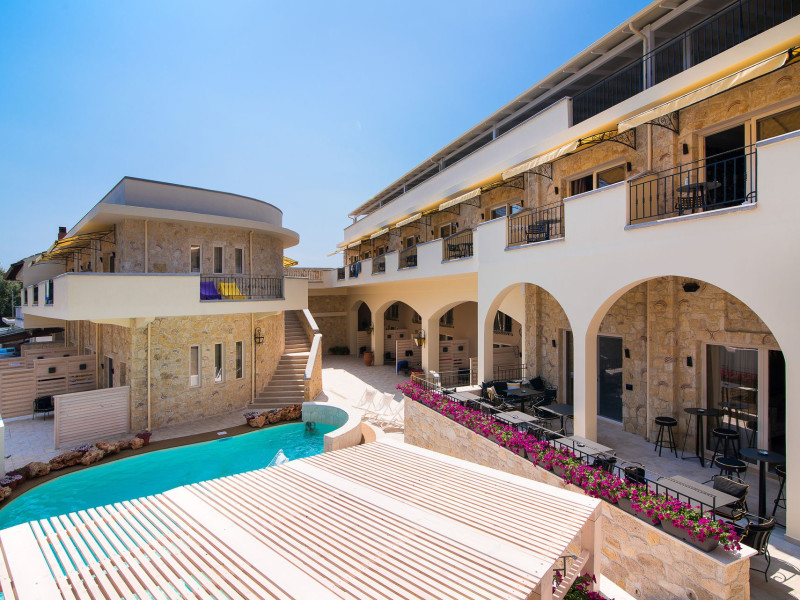 Neikos Luxury Suites, is located in Halkidiki in the peninsula of Kassandra. Ideally situated in the village of Hanioti 50 m. from the sea and 100 m. from the center, it is built with respect to traditional architecture. This new summer resort with its interiors inspired of natural beauty, with colors and brushes of the Mediterranean aesthetics, dispose rooms and suites fully equipped and unique atmospheric decoration. Its exteriors with the beautiful individually garden and balconies in combination with the exotic wavy pool, are idyllic summer destination. The facilities of NEIKOS Luxury Suites and the quality of customer services are completed by the luxurious residence in an ideal relaxation environment.